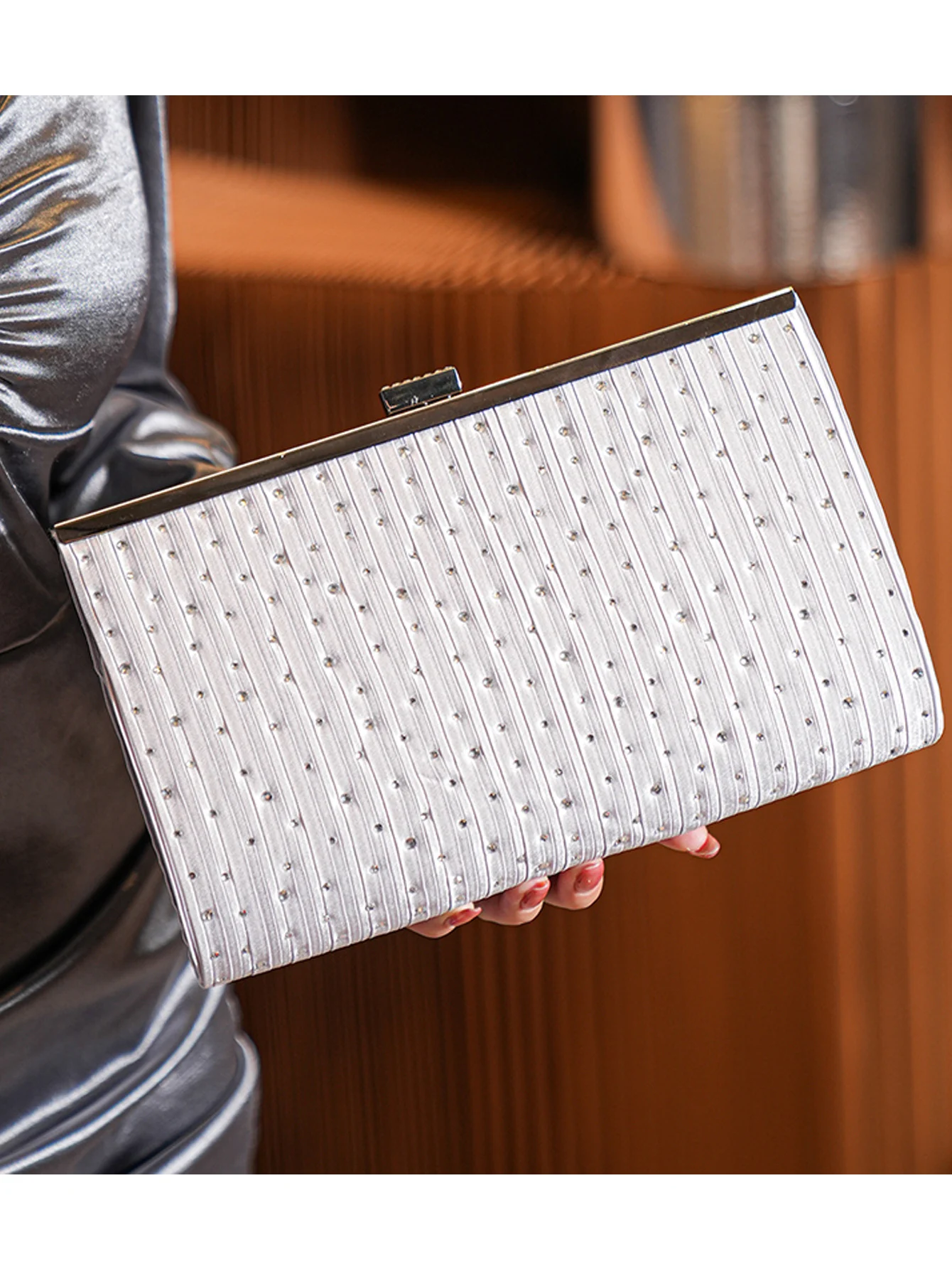 Pochette Argenté pour Femme – WARIIEK – à bandoulière en soie synthétique